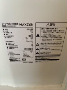 今回買取したのはmaxzen(マクスゼン)168L 2ドア冷蔵庫 JR168ML01WH です。このモデルは、一人暮らしや二人暮らしの方に適した容量で、冷蔵室120L・冷凍室48Lと、食材をしっかり保存できる設計になっています。また、直冷式を採用しており、温度調節ダイヤルで庫内の温度を細かく調整可能です。さらに、運転音は約26dBと静音設計で、寝室やワンルームでも気になりにくい仕様です。上部は30kgまでの耐荷重があり、電子レンジを置くこともできるため、限られたスペースを有効活用できます。