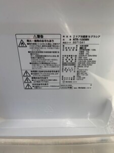 今回はニトリ製品をお引き受けしましたので査定内容をご紹介します!NITORI(ニトリ)106L 2ドア冷蔵庫 NTR-106WH 2022年製
