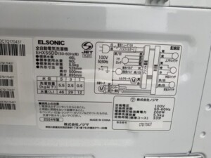 ELSONIC(エルソニック)全自動洗濯機 5.5キロ EHX55DD 2024年製