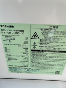 以下、詳しくご説明します!TOSHIBA(東芝)170L 2ドア冷蔵庫 GR-U17BS(K)2023年製