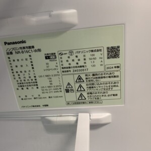 中古市場でも一定の需要が期待できるお品物でした。Panasonic(パナソニック)156L 2ドア冷蔵庫 NR-B16C1-W 2024年製