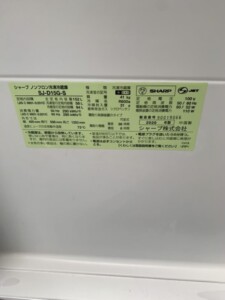 SHARP(シャープ)ノンフロン冷凍冷蔵庫 SJ‐D15G‐S 2020年製を出張査定しました!