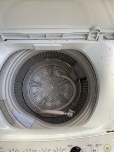 外観には目立つ傷や汚れはなく、操作パネルの文字消えなどもありませんでした。内部の洗濯槽もきれいに保たれており、動作確認時の水漏れや異音もなし。