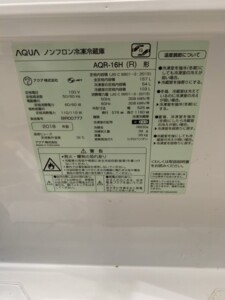 愛知県名古屋市中区のお客様より冷蔵庫や洗濯機などまとめて査定の依頼を受け出張買取へ伺ってきました。今回はその中から【 AQUA(アクア)ノンフロン冷凍冷蔵庫 157L AQR‐16H 2018年製 】の査定についてご紹介させていただきます。