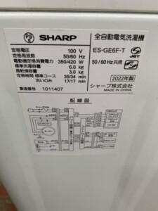 今回は、愛知県名古屋市中村区へ【 SHARP(シャープ)の全自動洗濯機「ES‐GE6F‐T 6キロ 2022年製 】出張査定へ行ってまいりました。お客様より「引っ越しで不要になったので買取に来てほしい」とご要望いただきました