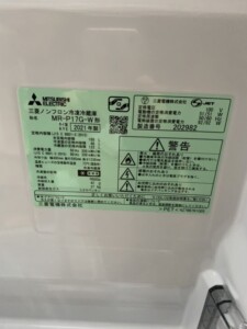 MITSUBISHI(三菱)168L 2ドア冷蔵庫 MR-P17G-W 2021年製