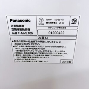 Panasonic(パナソニック)次亜塩素酸空間除菌脱臭機 F-MV2100 2020年製