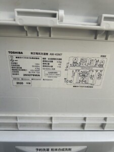 詳細をご覧ください!TOSHIBA(東芝)4.5キロ 全自動洗濯機 AW-45M7 2020年製