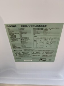 今回は、ノジマのプライベートブランドELSONIC(エルソニック)の2ドア冷蔵庫「EJ-R832W(2023年製)」を買取しました。