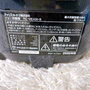 本日は下記製品をご紹介します。IRIS OHYAMA(アイリスオーヤマ)ジャー炊飯器 RC-MEA30-B 2023年製