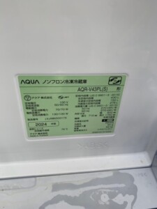 今回は引っ越しに伴う冷蔵庫の売却相談をいただきました。AQUA(アクア)430L 4ドア冷蔵庫 AQR-V43PL(S)2024年製