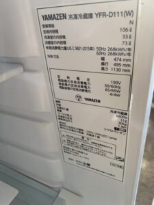 愛知県名古屋市中村区へ【YAMAZEN(山善)106L 冷凍冷蔵庫 YFR-D111 2021年製】の出張買取へ行ってまいりました