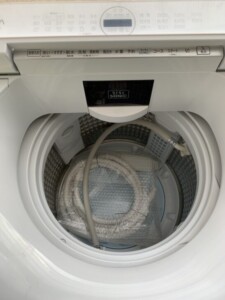 今回査定したお品物は、外観に目立った傷や凹みがなく、綺麗な状態でした。洗剤の投入口や洗濯槽の淵、糸くずフィルターにいたるまで丁寧にお手入れされている印象を受けました。さらに、風呂水給水ホースなどの付属品もすべて揃っており、再販するうえで問題のない良好なコンディションでした。中古品の場合、付属品が欠品していることも多いですが、今回のお品物はしっかりと保管されていたようです。