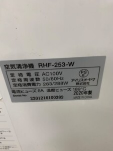 IRIS OHYAMA(アイリスオーヤマ)空気清浄機 RHF-253-W 2020年製