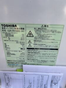 それでは、査定士として実際に行った査定内容をご紹介させていただきます。TOSHIBA(東芝)153L 2ドア冷蔵庫 GR-R15BS(W) 2019年製