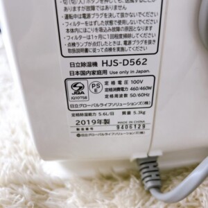日立のHJS-D562は、優れた除湿能力と高いエネルギー効率を誇る除湿機です。