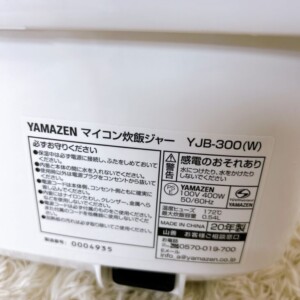 それでは、お引き受けした製品の査定内容をご紹介します。YAMAZEN(山善)マイコン炊飯ジャー YJB-300(W) 2020年製