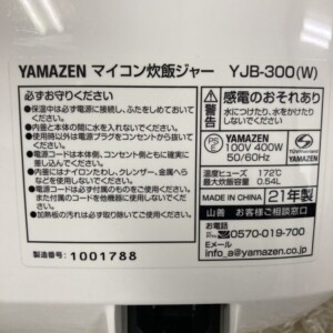 先日、YAMAZEN(山善)の炊飯器「YJB-300(W)」を出張買取いたしました。