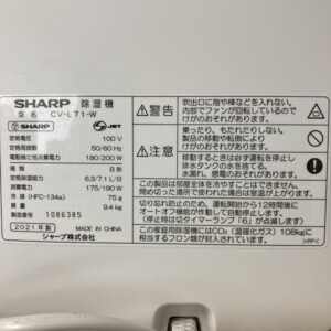 今回は愛知県 西尾市 楠村町 北浜屋敷にて出張買取を行いました!先日、SHARPの除湿機「CV-L71-W」を買取いたしました!
