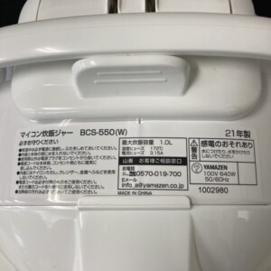 今回は愛知県 知多市 新知東町にて出張買取を行いました!先日、YAMAZENのマイコン炊飯ジャー「BCS-550(W)」を買取いたしました!
