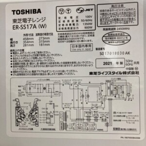 今回は京都府 木津川市 城山台にて出張買取を行いました!先日、TOSHIBAの電子レンジ「ER-SS17A (W)」を買取いたしました!