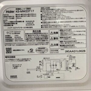 今回は兵庫県 豊岡市 江本にて出張買取を行いました!先日、ハイアールの電子レンジ「KS-MW23T17-WH」を買取いたしました!