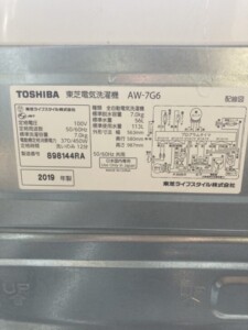 TOSHIBA(東芝) 7.0kg 全自動洗濯機 AW-7G6-W 2019年製