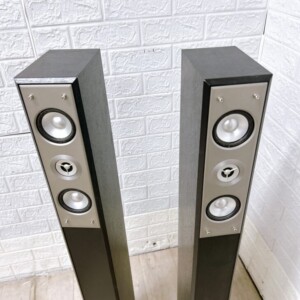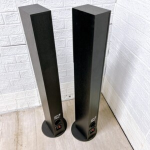 高さ約105cmのスタイリッシュなフロア型スピーカーで、リビングやホームシアター環境に美しく調和します。2ウェイバスレフ型を採用し、10cmウーファーと2.2cmソフトドームツィーターを搭載
