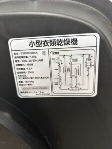 今回は、以下の製品の査定内容をご紹介します。ビーティーエム 1.5キロ 小型衣類乾燥機 ES289523BAA