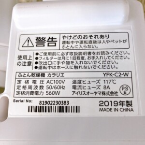 北海道札幌市北区にてアイリスオーヤマの人気商品「ふとん乾燥機 カラリエ YFK-C2-W 2019年製」を出張査定しましたので、査定内容や中古市場の相場について詳しくご紹介します