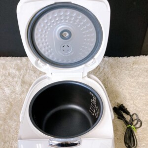 目立ったキズや汚れもなく、非常に丁寧に扱われていたことがうかがえます。内釜のフッ素加工も剥がれなどはなく、動作確認もすべて問題なく完了しました。中古品としては非常に状態が良好で、査定において高く評価できるコンディションでした