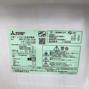 詳しい査定内容をぜひチェックしてください!MITSUBISHI(三菱)146L 2ドア冷蔵庫 MR-P15F-H 2021年製