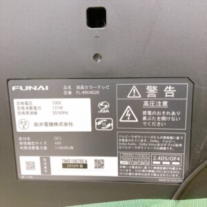 今回は、FUNAI(フナイ)の49型4K液晶テレビ「FL-49U4020」を買取させていただきました。高画質・高機能なテレビとして人気のあるモデルで、状態も非常に良く、スムーズに査定を行うことができました