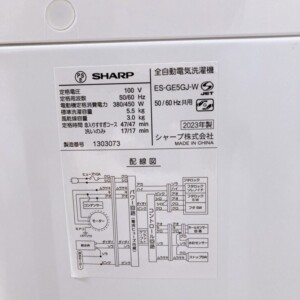 北海道札幌市中央区にて【 SHARP(シャープ)5.5キロ 全自動洗濯機 ES-GE5GJ-W 2023年製】を出張査定しました
