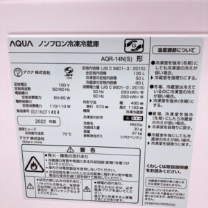 愛知県名古屋市中村区にて【 AQUA(アクア)135L 冷凍冷蔵庫 AQR-14N 2022年製】を査定しました!