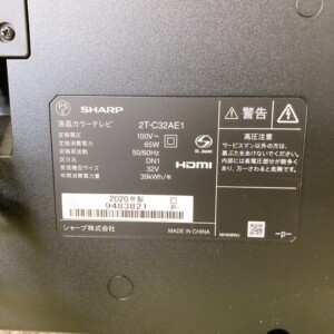愛知県名古屋市中区にて【SHARP AQUOS 32型液晶テレビ 2T-C32AE1 2020年製】を査定しました