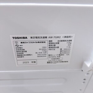 今回は、TOSHIBA(東芝)の全自動洗濯機「AW-7GM2(W)」を出張買取させていただきました。7kgの容量で使い勝手がよく、単身者からファミリーまで幅広く支持されている人気モデルです。