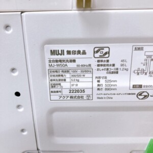 買取した「洗濯機 MJ-W50A」は、外装に少し使用感と汚れが見受けられましたが、内部は非常に清潔で、特に目立つ汚れやカビは確認されませんでした。