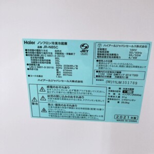 北海道札幌市中央区にて【Haier(ハイアール)JR‐N85C 85L ノンフロン冷凍冷蔵庫 2021年製】を出張査定しました