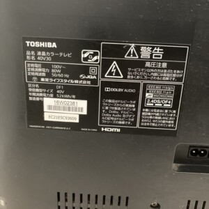 北海道札幌市豊平区にて【TOSHIBA(東芝) レグザ 40インチ液晶テレビ 40V30(2016年製)】を出張査定しました