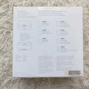 「Universal Dock MC746LL/A」は、Apple純正の多機能ドックで、iPodやiPhoneを設置することで充電・同期・音声出力などが可能になるアクセサリーです。30ピンDockコネクタ時代の製品ですが、今なお根強い人気を誇ります。