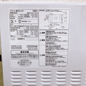 愛知県名古屋市中区にて【NITORI(ニトリ) 電子レンジ BN520X 2022年製】を出張買取しました!お客様はお引越しに伴い、いくつか家電が不要になるということでまとめて査定・引き取りへ伺いました。