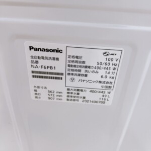 今回買取させていただいた「Panasonic NA-F6B1」は、洗濯・脱水容量が6.0kgの全自動洗濯機で、一人暮らしや少人数世帯にちょうど良いサイズ感のモデルです。