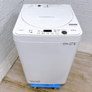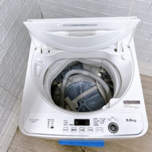 SHARP製の全自動洗濯機「ES-GE5F-W」は、洗濯容量5.5kgのコンパクトモデルで、一人暮らしや少人数のご家庭に最適なサイズ感です。