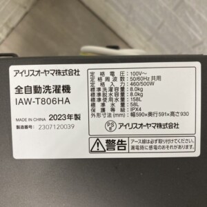 IRIS OHYAMA(アイリスオーヤマ)8.0キロ 全自動洗濯機 IAW-T806HA 2023年製