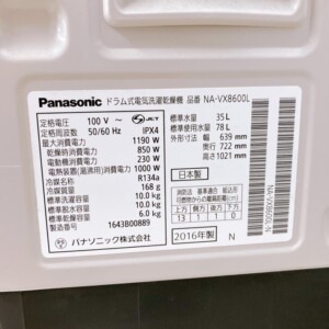 今回買取させていただいたのは、Panasonic(パナソニック)のドラム式洗濯機「NA-VX8600L」です。NA-VX8600Lは、パナソニックが2016年に発売したハイグレードモデルで、「温水泡洗浄W」や「ヒートポンプ乾燥」といった高機能が搭載されているのが特徴です。衣類の汚れをしっかり落としつつ、繊維へのダメージを抑えることができるため、デリケートな衣類にも安心して使用できます