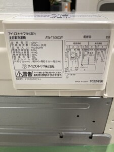 アイリスオーヤマ製の全自動洗濯機「IAW-T806CW」を出張買取させていただきました。出張先は都内のお客様宅で、スムーズな査定が可能でした。以下に、商品の特徴や状態、現場の状況、そして査定の結果について詳しくご紹介いたします。