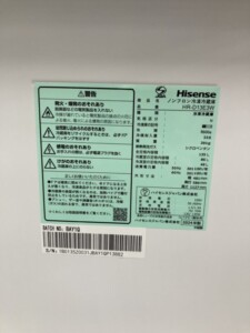 今回買取させていただいたのは、Hisense(ハイセンス)2ドア冷蔵庫 HR-D13E3W