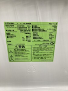 愛知県名古屋市中村区にて【IRIS OHYAMA(アイリスオーヤマ) IRSD-14A-B 2023年製】を出張買取いたしました!お客様より引っ越しで冷蔵庫、洗濯機が不要になりご依頼いただきました。訪問したところ、その他にも不要品があるということでしたので、棚や洗濯機ラックなども追加で査定させていただきました