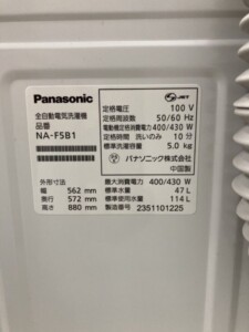 今回お買取させていただいた「NA-F5B1」は、パナソニックの全自動洗濯機で、以下のような特徴があります:
